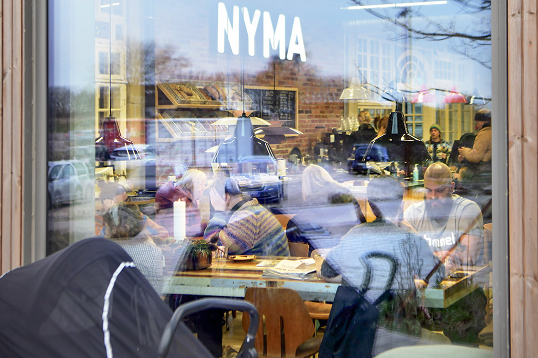 I caféen er der afslappet stemning og højt til loftet. Der er plads til dig, der gerne vil sidde med avisen eller har lyst til at sludre med venner eller mødes med naboer. Der er plads til at arbejde eller holde små møder – eller pusle din baby. Nyma er cafe og købmand samme sted.