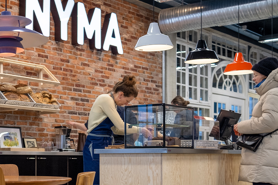 Nyma er både en butik med dagligvarer og udvalgte specialvarer, og en café og mødested under ét og samme tag.